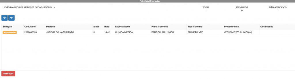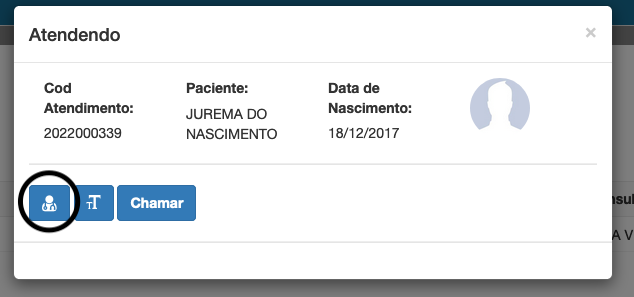 Agora vamos selecionar o paciente na listagem clicando 2x e logo em seguida clicando no ícone do consultório.