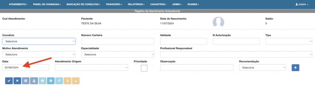 Quando um atendimento é criado ele é registrado com a data e hora do momento que o mesmo é salvo.