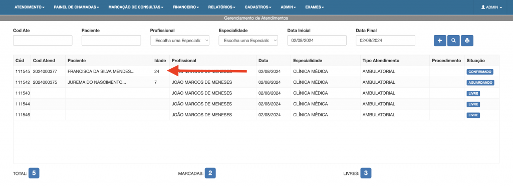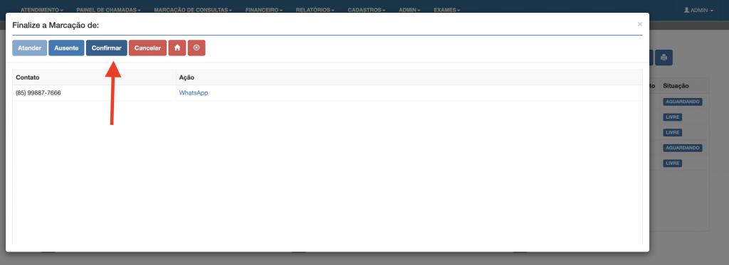 Para testar essa ordenação, vamos confirmar o segundo paciente e validar se realmente ele está indo para o topo da listagem.